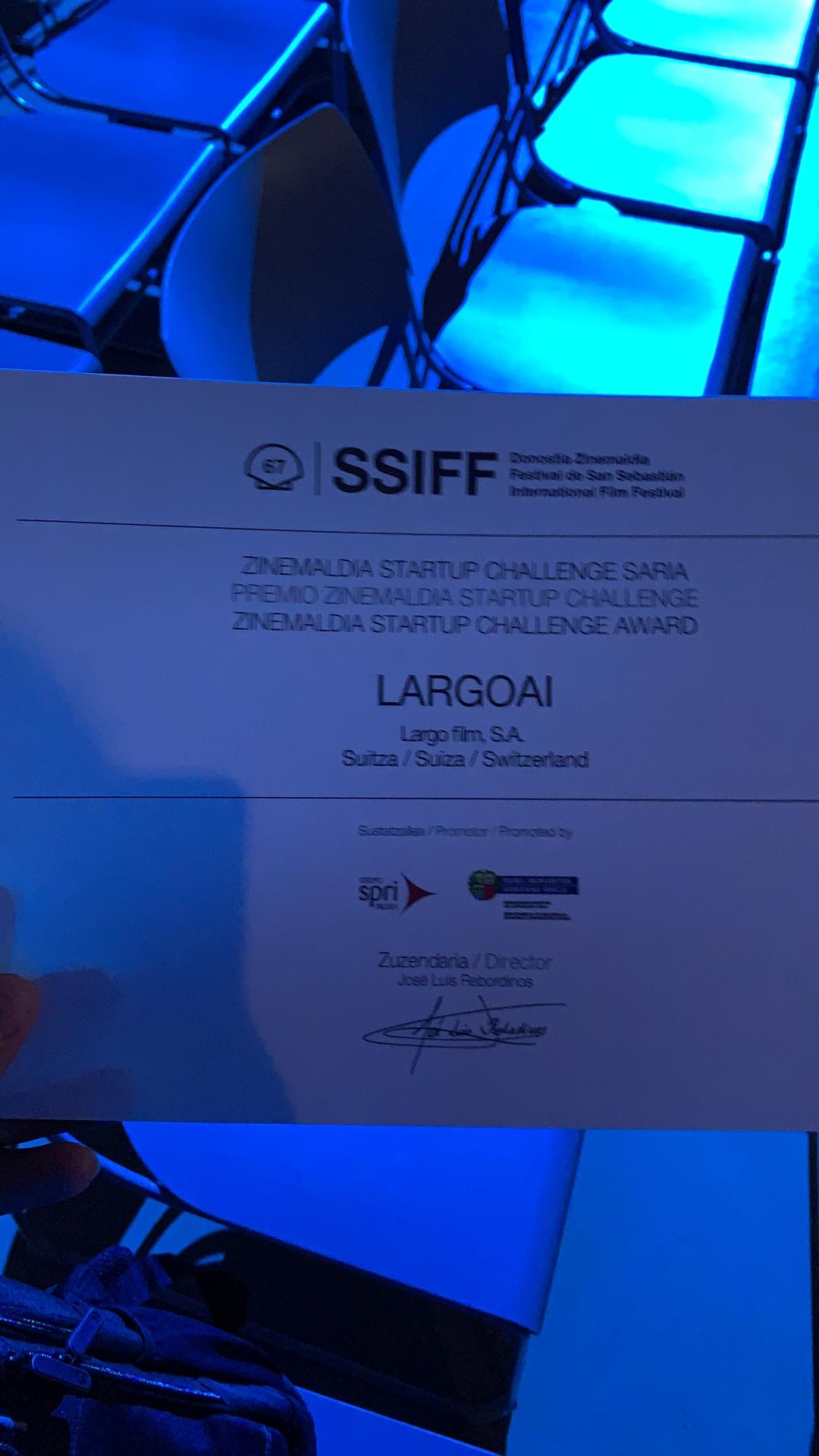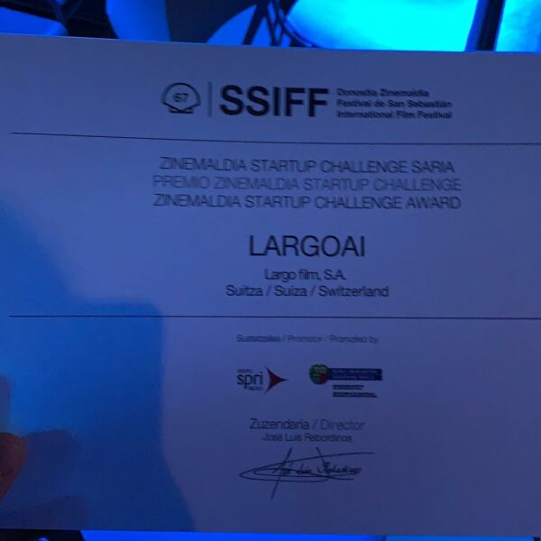 We are very proud to announce that Largo won the best start-up award at 67th edition of San Sebastian film festival.